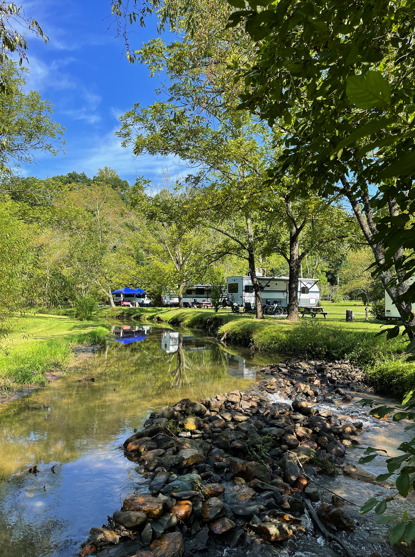 Persimmon Creek runs right through the RV park! Swim, fish, and play at your own risk as there is no lifeguard on duty. Lots of folks like to soak in the sun! Come join us!